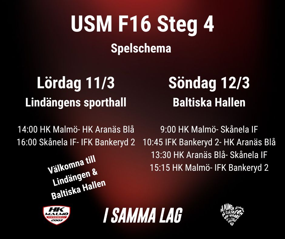 HK Malmö hälsar Aranäs, Bankeryd och Skånela välkomna till Malmö för att kämpa om en plats i steg 5 som 8 lag från hela Sverige tar sig till. Steg 5 spelas i Uppsala första helgen i maj.
