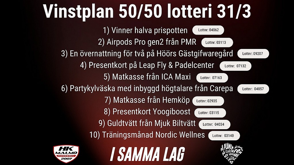 Vinnande nummer från matchen i fredags mellan HK Malmö och Eskilstuna Guif.