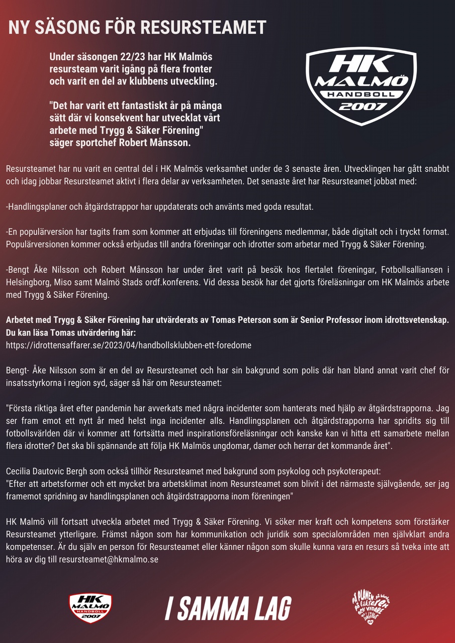HK Malmö söker fler volontärer till våra matcher och events