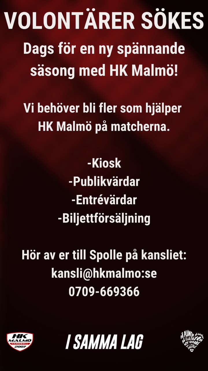 HK Malmö söker fler volontärer till våra matcher och events