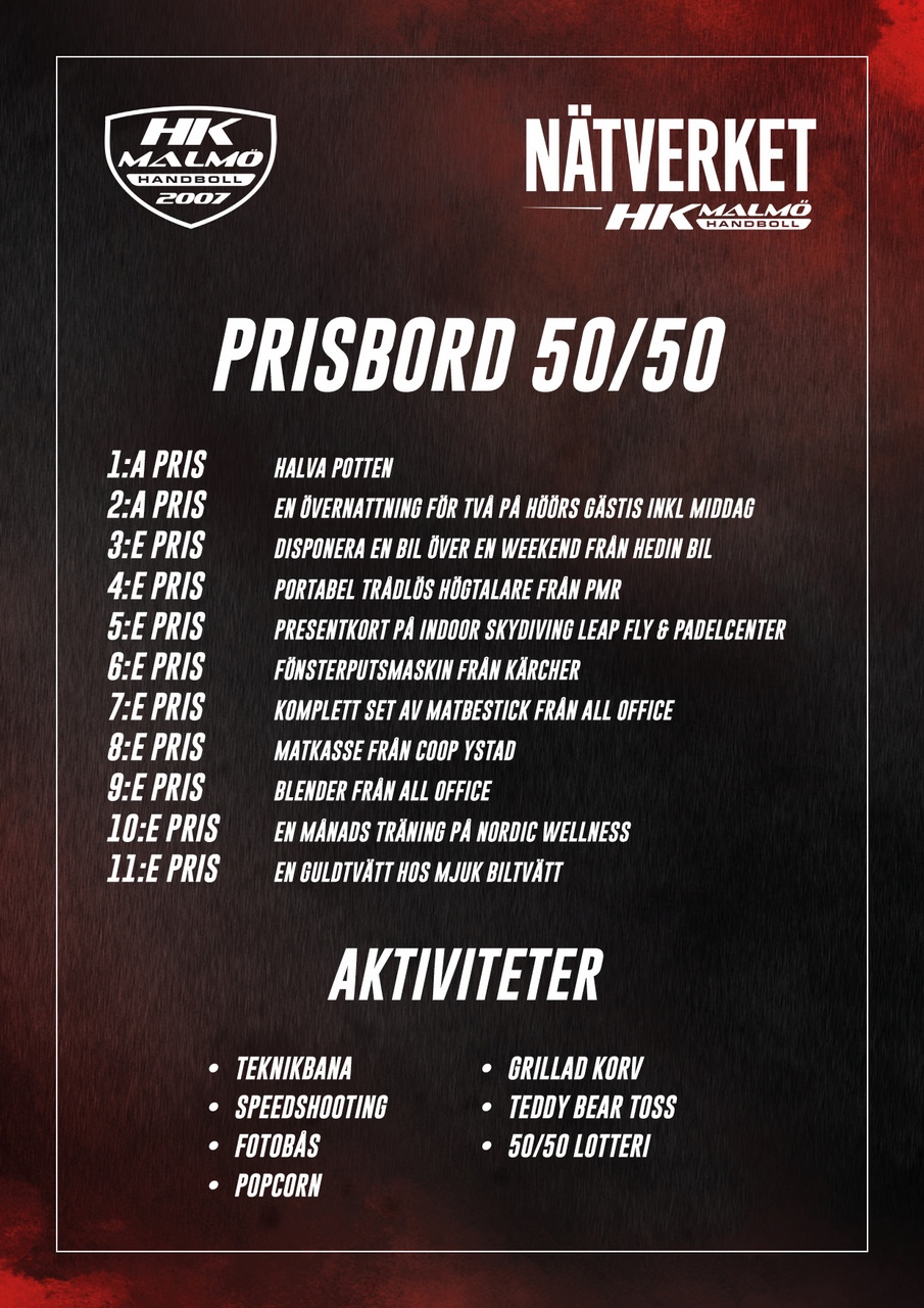 Finfina priser att vinna denna kväll så testa lyckan med att köpa våra 50/50-lotter