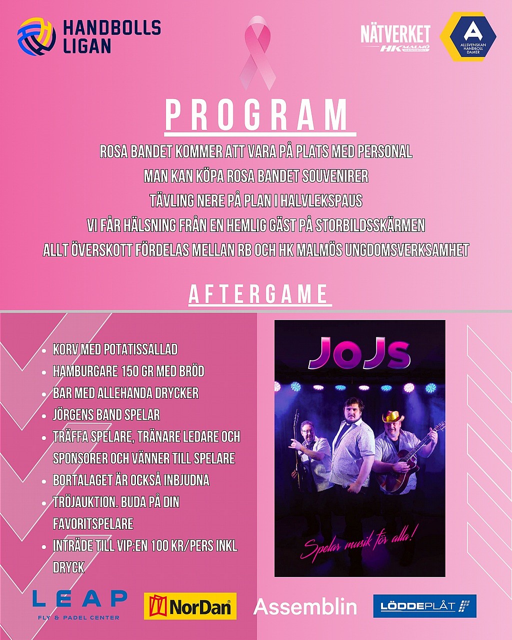 För att göra denna handbolls dag ännu festligare kommer vi ha rosa tema under hela dagen och som avslutas med en After Game i VIP:en