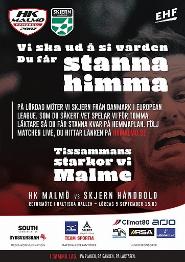 HK Malmö har skaffat sig en bra möjlighet att avancera till kvalomgång 2 i männens European League säsongen 2020/21 efter förlust med en boll 26-27 mot Skjern i match 1. Vi kommer i enlighet med myndigheternas beslut ta emot max 50 åskådare i returen nu på lördag utöver funktionärer, media samt spelare och ledare. Dessa 50 personer finns på en redan fastställd lista i entrén. Vi kommer därför inte kunna sälja några biljetter till allmänheten varken sig i förväg eller på plats i Baltiska Hallen.
