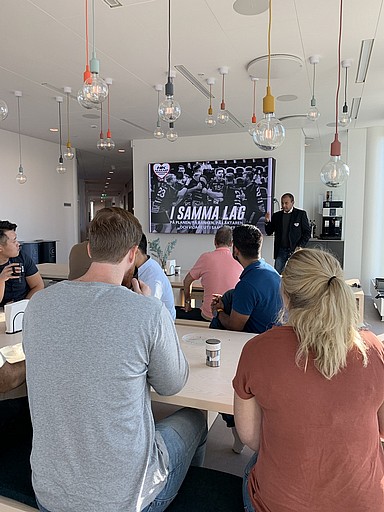 Formatet för dessa frukostar är att man kör sin presentation för en fysiskt närvarande publik och sedan kan övriga medarbetare inom koncernen som sitter runt om i landet koppla upp sig via Teams och ta del av presentationen. På detta sätt når man en månghövdad publik utanför Malmö, coolt!