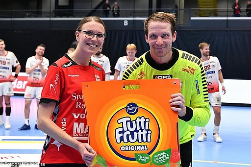 Priset till vår bäste spelare gick till Dantomen i holken, Dan Beutler, men det var en annan målvakt som tilldrog sig vårt fokus efter matchen, nämligen junioren Ebbe Håkansson, som ersatte sjuke Anton Hellberg. Ebbe kom in med tio minuter kvar och gjorde sin första räddning i Handbollsligan strax därefter på Rickard Åkermans friläge. Han fortsatte sedan i god stil matchen ut, och visade på en fin talang för målvaktsspelet. Vi hoppas nu han orkar med den tunga träningen, för då får vi nog se mer av honom i framtiden.