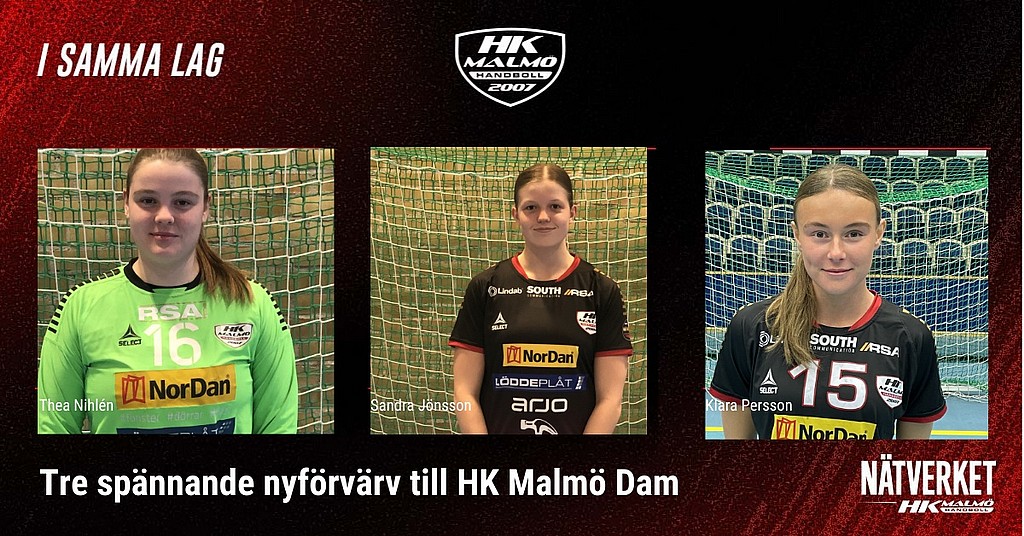 Inför säsongen har 3 unga spelare valt att ansluta till HK Malmö Dam. Thea Nihlén målvakt från Eslöv, Klara Persson vänstersexa från Lödde och Sandra Jönsson niometers spelare från H43 Lund. De har varit igång med laget en längre period och nu är det dags för en presentation.