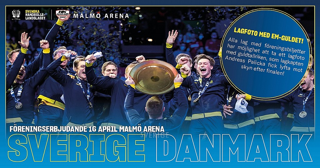 Föreningserbjudande Sverige mot Danmark den 16 april kl. 16.00 i Malmö Arena.