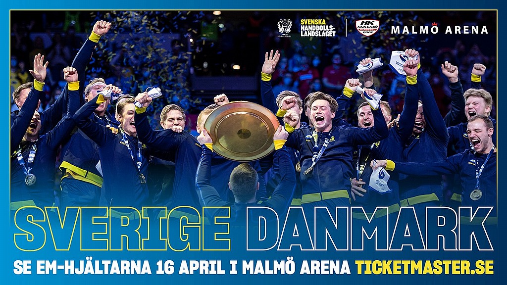 Nyblivna Europamästarna Sverige tar emot världsmästarna Danmark i en riktig guldstrid påskafton den 16 april kl. 16.00 i Malmö Arena.